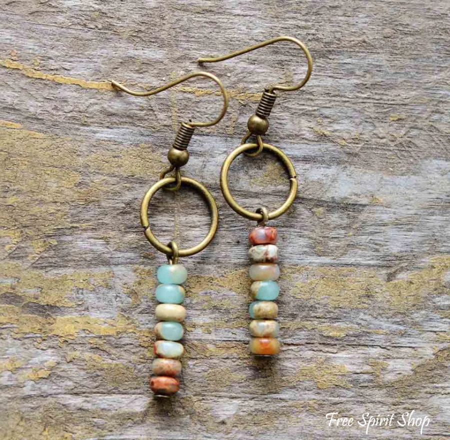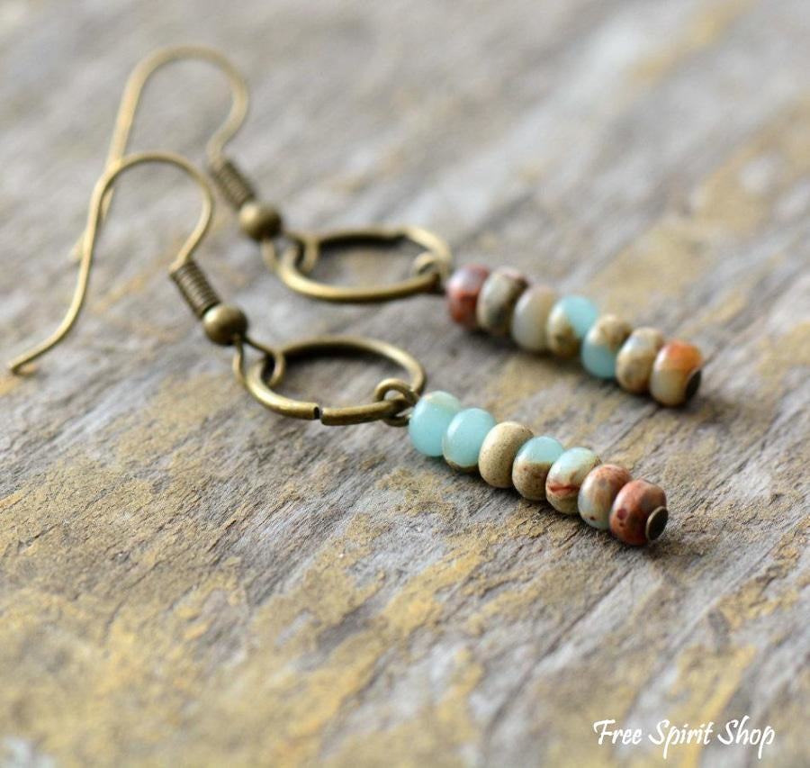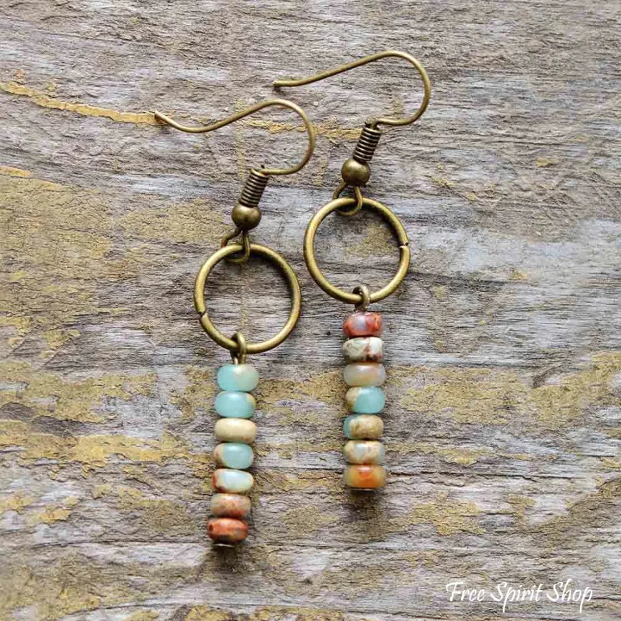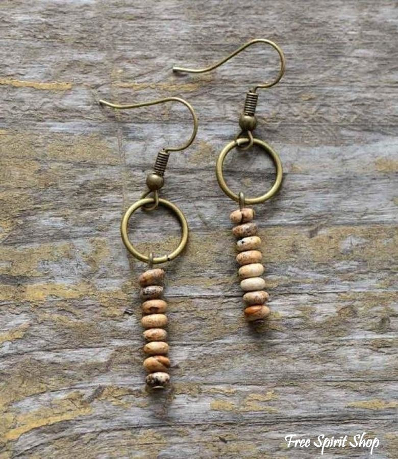 Vintage Natural Jasper Stone Ethnic Circle Earrings